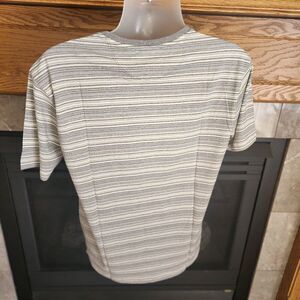 The Bench Men's Feeder Striped Crew Neck T-shirt is a high-quality, 100% cotton tee featuring a stylish striped design. With its classic crew neck and comfortable fit, this t-shirt offers a casual and trendy look. It's brand new with tags (NWT), ensuring it's in pristine condition. Perfect for everyday wear, this shirt combines style with comfort, making it a versatile addition to any wardrobe.