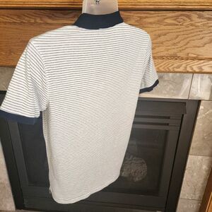 The Bench Men's Short Sleeve Blue Striped Polo features a stylish blue striped design with an embroidered logo on the chest. Made from comfortable and breathable fabric, this polo is perfect for casual wear. It is brand new with tags (NWT), ensuring its pristine condition. Ideal for a smart-casual look.