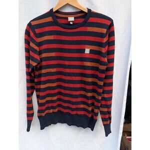 Bench Mens Stagger Print Crewneck Sweatshirt Sz M Orange Red Navy Preppy. Sweater is in excellent condition with minimal signs of wear.