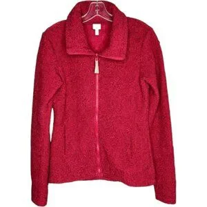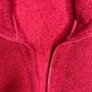 Marled zip-up fleece jacket with a boucle-like textured exterior.