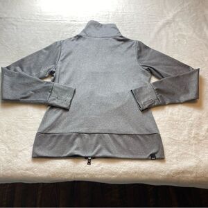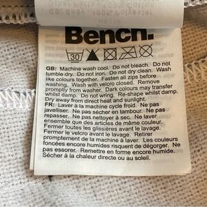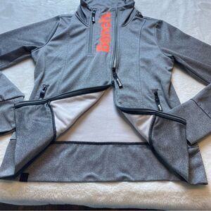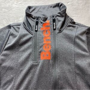 Bench Gray Front Zip Jacket Size Large. Excellent used condition. Full front zipper closure with 1/4 zip at neck. Large embroidered Bench Logo. Thumb holes at cuffs. 2 front zipper pockets. Measures chest 38", length 24.5", sleeve 27.5".