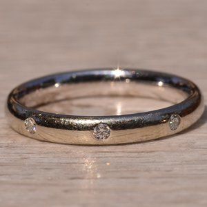 Benchmark Signed White Gold Natural Diamond Stackable Band
