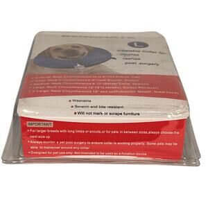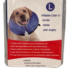 New in packaging. Inflatable dog collar for injuries, allergies, surgeries, etc. Size Large, 12" - 18" circumference