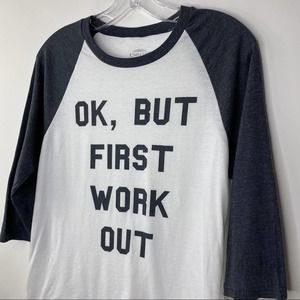 Bend Graphic Muscle T-Shirt Womens But First We Work Out Baseball Stretch Small