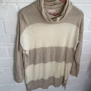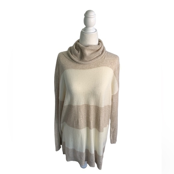 Benedetta B. Cashmere Cream Striped Turtleneck Made in Italy Sweater sz L