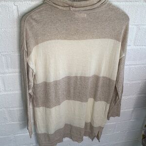 Benedetta B. Cream Striped Turtleneck Made in Italy Cashmere Sweater sz L