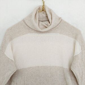 Benedetta B Striped Knit Long Turtleneck Cream /white Merino Wool Sweater P3315