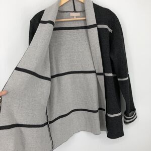 Benedetta B Sweater Womens Medium Gray Black Open Cardigan Merino Wool Cashmere Italy