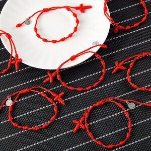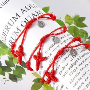Benedict Rosary Bracelet Red Adjustable Metal String Unisex Jewelry