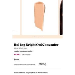 This listing is for the Benefit Boi-ing bright-on under eye concealer in the shade ginger (medium, warm, yellow ). This item is brand new in the box . Retails for $28 on benefits website. I offer an additional discount for bundled items of mine so check out my other listing.