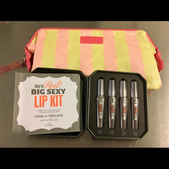 Brand new *benefit big sexy lip kit ( 4 lipsticks ) *benefit makeup bag