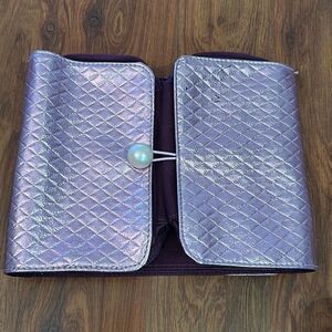 Benefit pink purple metallic cosmetic pouches with built in large mirror