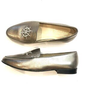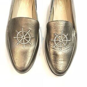 Benelli Size 6 Leather Metallic Gold Loafers Ship Embroidered Wheel Nautical