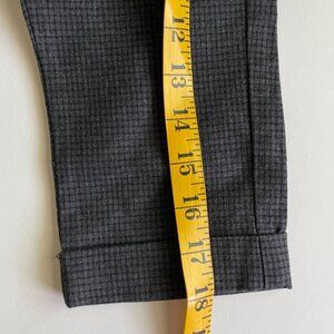 Charcoal gray checkered pleated boys pants with adjustable waist and 2 pockets on the front and 2 buttoned pockets on the back.