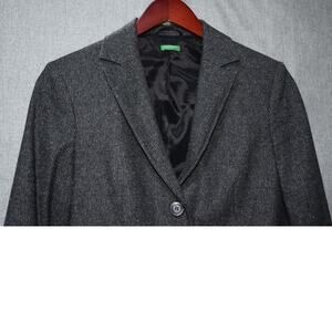 Benetton Gray Wool Blend Pinstripe 3-Button Blazer Jacket Size 40 (US 6)