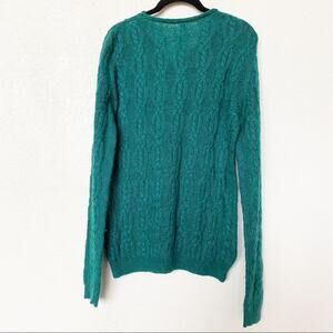 Benetton Green V-Neck Braid Cable Pattern Sweater Size Large