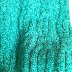 V-neck sweater with allover braid cable knit pattern and a shimmery thread throughout. Mohair blend, size large.