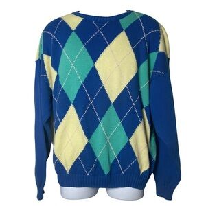 Benetton Sweater Mens Argyle Blue Pink Yellow Made In Italy Cotton Knit Size XL