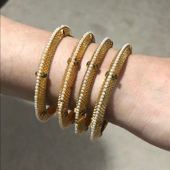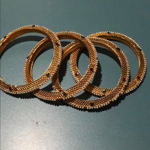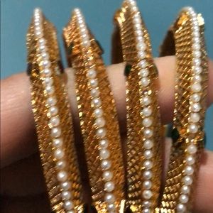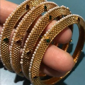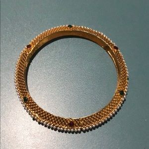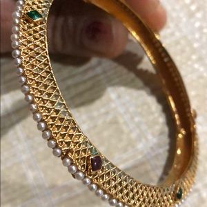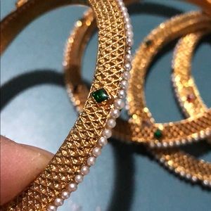 It’s very beautiful in gold color with red and green Meeno and very small pearls.