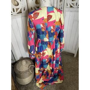 Benin Pink Multicolor Floral Long Maxi Lightweight Dress Colorful Size 6
