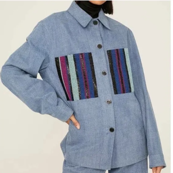 Benjamin Benmoyal Cassette Overshirt Striped Denim Oversized Shirt Jacket Top Blue XS