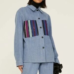Benjamin Benmoyal Cassette Overshirt Striped Denim Oversized Shirt Jacket Top Bl
