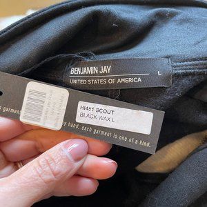 Never worn, super soft with stretch Benjamin Jay Black Wax Zip up vest with gold details.