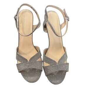 Benjamin Walk Riley Silver Glitter Strappy Block Heel Sandals 10 NWT