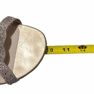 Benjamin Walk Touch Ups Size 9.5M Women’s Gold Glitter Low Wedge Strappy Sandals, Open Toe, Rhinestone Embellished Twisted Front Straps, Adjustable Ankle Buckle Closure, Cushioned Insole, Flexible Outsole; Evening Party Cocktail Bridal Bridesmaid Wedding Guest Prom Holiday Cruise Resort Summer Elegant Glam Luxe Special Occasion