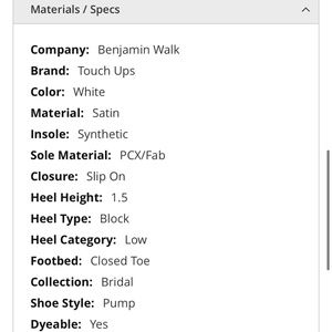 Benjamin Walk Touch Ups Dyeables Betty White Satin Pump - Size 7.5
