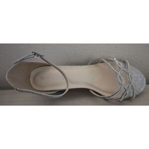 Features:Elevate your glamorous look with the Touch Ups® Zoey sandal.Man-made upper features a metallic finish.Ankle strap with adjustable buckle closure.Open-toe silhouette.Crisscrossing jewel-encrusted straps over vamp.Breathable man-made lining.Lightly padded footbed for added comfort.Wrapped block heel.Man-made outsole.Imported.
