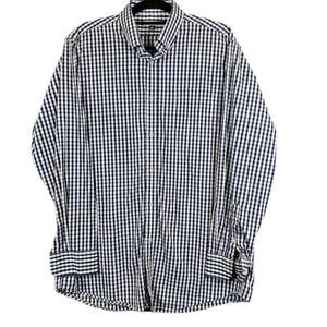Benjamin & Walls Men's Button Front Shirt Navy Blue White Gingham Check Size XL