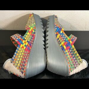 Bennie Mev Calypso Peep Toe Woven Women’s Wedge Heel Shoes Size 39/8.5-9 Medium. Foam Insole Rubber Outsole. Excellent Preowned Condition.