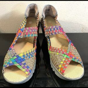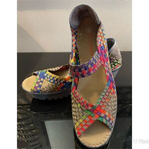 Bennie Mev Calypso Peep Toe Wedge Heel Woven Shoes WMS SZ 39/8.5-9 M.