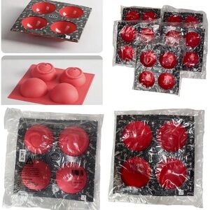 Bennkai Mold Hot Chocolate Bomb Maker Red Silicone Swirl Spheres 2" Bundle Lot of 5 NEW NIP New in Package - Sealed and Never Opened - See Photos Includes Bundle Lot of 5 packages Food grade silicone. Safe to use in the refrigerator, microwave and oven. Dishwasher safe. Hot cocoa bombs! Make your own at home! 2 inch spheres and 4 bomb halves.