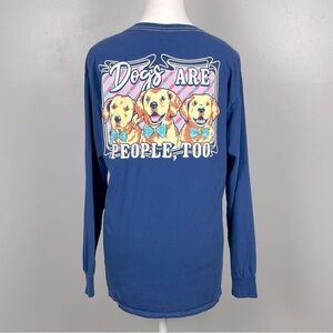 Benny & Belle Dogs Are People Too long sleeve blue cotton tshirt, size medium.