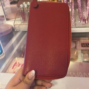 Crossgrain leather , zip coin pocket 12 credit card slots zip around closure , full length bill comps