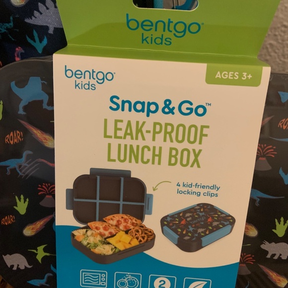 Make lunchtime roar-some with this matching Bentgo Kids Lunch Bag and Snap & Go Leak-Proof Snack Box set! Perfect for little dino fans, this set features a playful dinosaur print with erupting volcanoes, dino tracks, and bold “ROAR!” accents that bring mealtime to life.