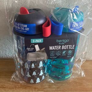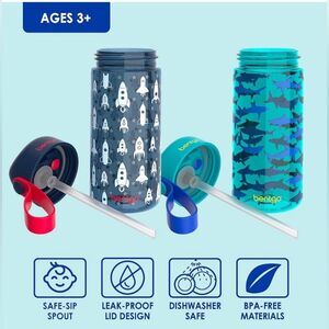 Bentgo Kids Water Bottle 2-Pack Leak-Proof BPA-Free 15oz Cup Straw Rockets