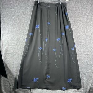 Bentley Arbuckle Vintage 90's Y2K Black Blue Floral Maxi Skirt Size 12 Made USA