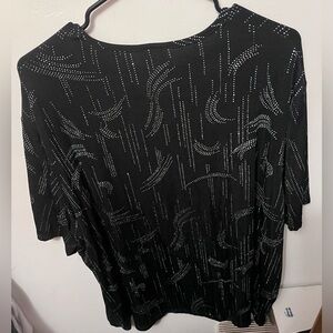 Elegant black top with intricate beaded design. Perfect for a night out.