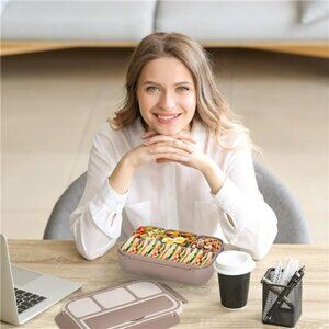 Bento Lunch Box Leakproof 4 Compartment Food Container with Utensils for Adults