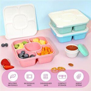 UPDATED MATERIAL & REUSABLE: Snack bento box is made of elastic high-quality and BPA-free wheat straw material (lid: grade 5 PP material) that can be used multiple times. Compared with disposable snack containers, wheat straw snack containers is the best way to protect the environment.