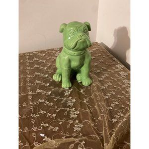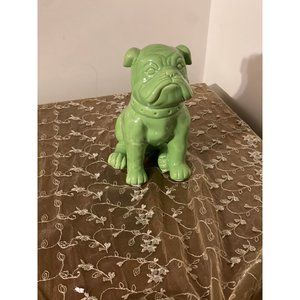 Dogs are men’s best friend here is a charming sitting british bulldog figurine which can embellish the style of any Decor. This bulldog figurine is made up of ceramic in smooth glossy finish with shiny green color. Collar belt of bull dog gives it a realistic look. Size: 7.00”x4.25”x8.00”H