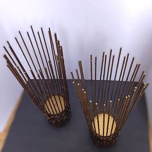 Benzara PAIR 14" Brass Metal Twig HRT-82745 Candle Holders