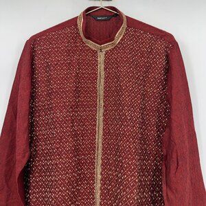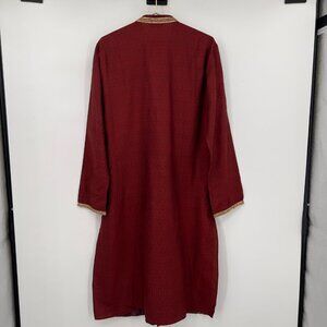 Benzer Traditional Maroon Embroidered Kurta with Gold Trim Mens — Size 40