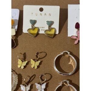 Add sparkle to your look with this beautiful earring collection featuring heart drops, butterfly charms, and classic silver hoops. Perfect for daily wear, parties, or gifting!