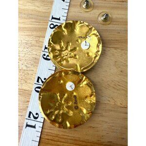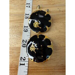 Berebi Black & Gold Circular Enamel Pierced Earrings With Abstract Design