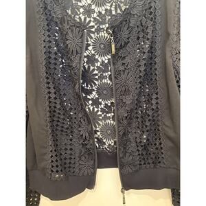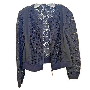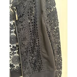 Berek Black Lace Bomber Jacket with Ornate floral Design Large