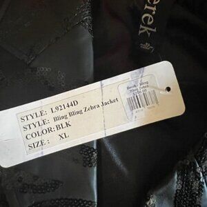 Berek Bling Bling Zebra Jacket Black XL sequin double front zipper ,stylish